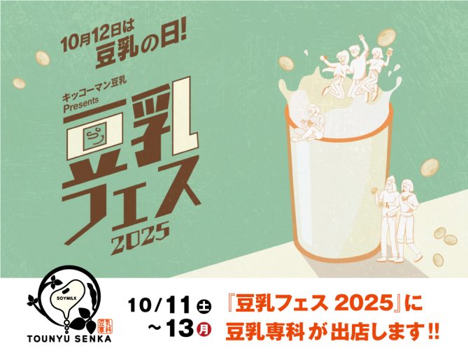 10/11~10/13『豆乳フェス2025』に豆乳専科が出店します! Gallery 10/11~10/13『豆乳フェス2025』に豆乳専科が出店します! Topics 10/11~10/13『豆乳フェス2025』に豆乳専科が出店します! 2025年10月11 [...] By tamura|2025-10-06T17:31:01+09:002025年10月6日|Topics|0 コメント 続きを読む